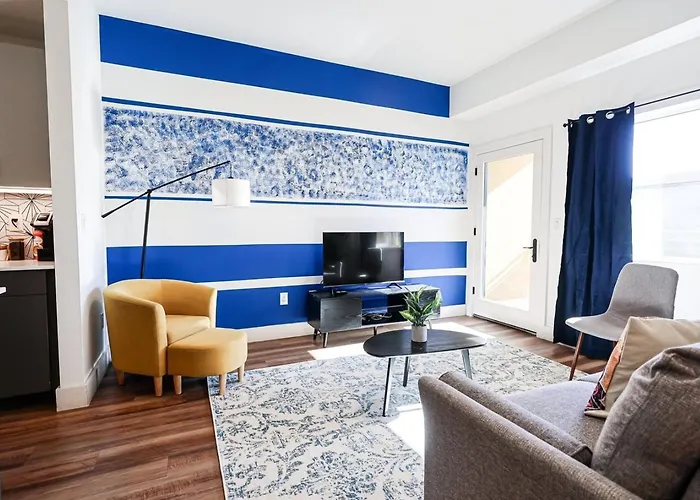 Cet appartement 1Bdrm & Aptwifi Near Trendyeateriesbrewerytown dispose d'un patio, d'un salon et d'une cuisine entièrement équipée, ainsi que de conforts tels qu'une climatisation. Ce logement compte 1 chambre à coucher. Il y a 1 salle de bain. Un sèche-cheveux et des serviettes sont également disponibles.